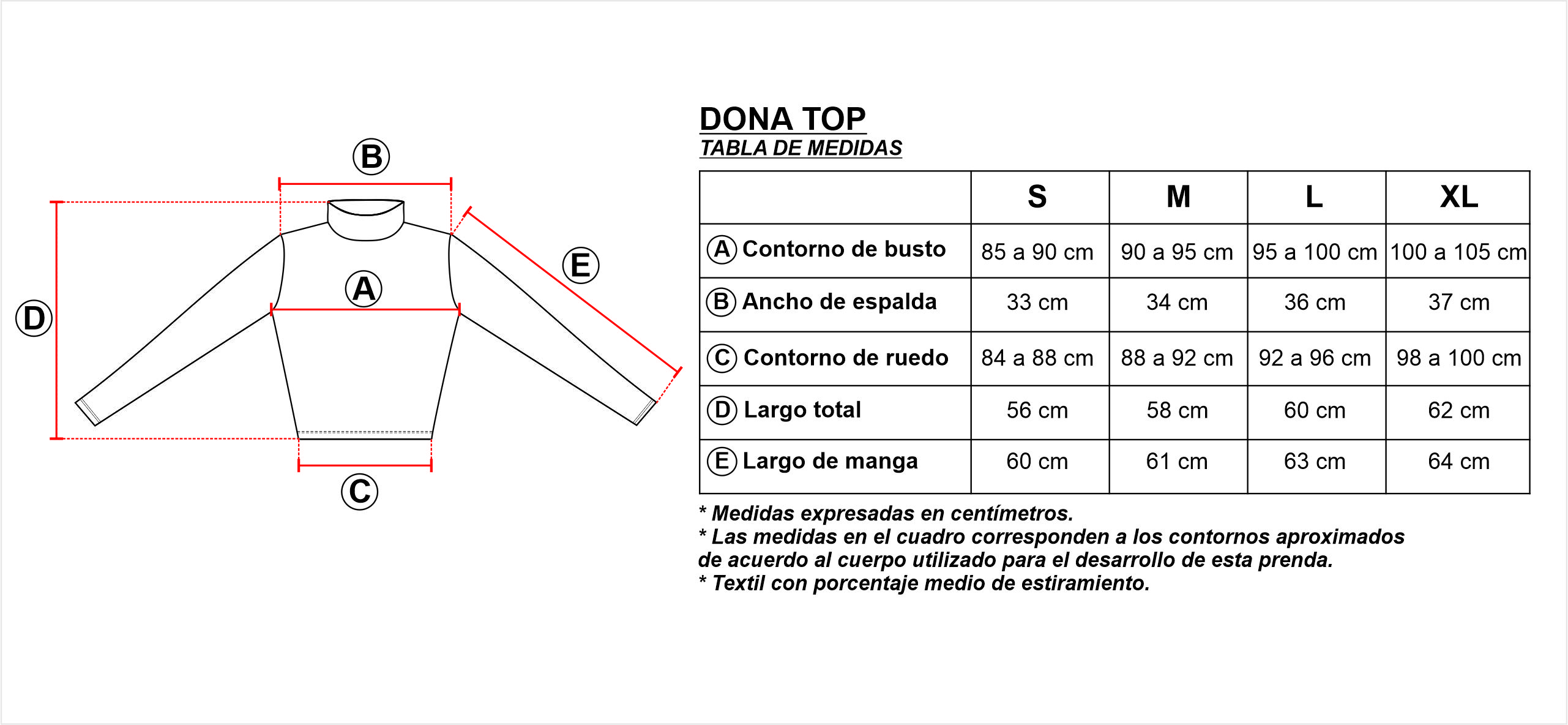 Top polera de microtul manga larga. Prenda con alto porcentaje de estiramiento.
