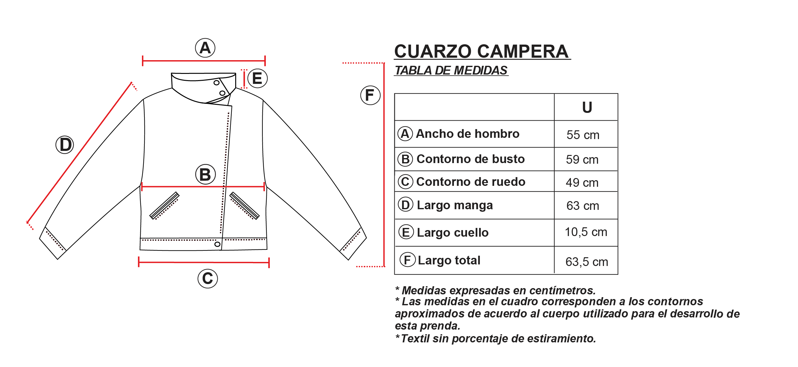 Cazadora realizada en 100% gamuza cuero vacuno. Cuello subido y manga larga acabada en puño. Bolsillos laterales. Bajo con pinzas. Cierre frontal con cremallera y botones ocultos con presión. Tiene hombreras. Íntegramente forrada.