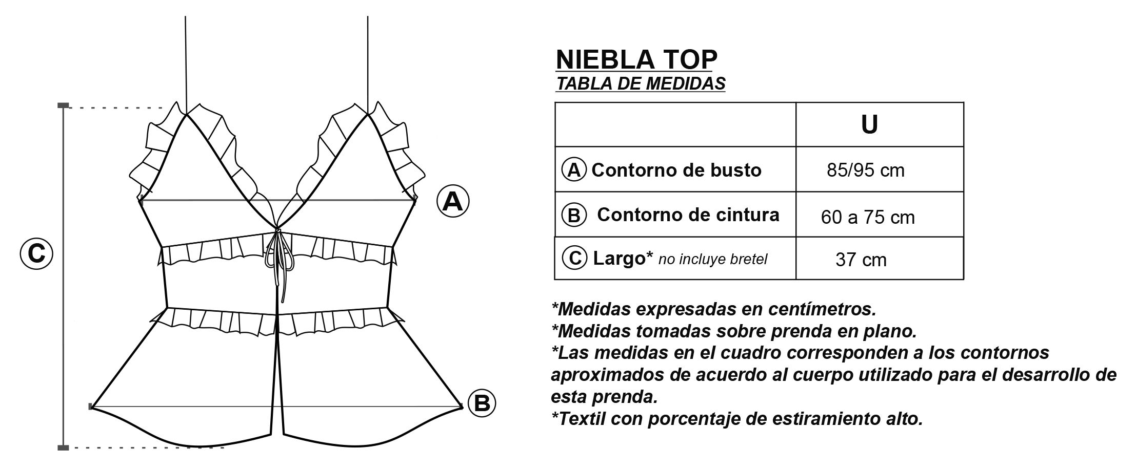 Top confeccionado en microtull estampado con diseño exclusivo de Shibinda. Cuenta con breteles finos, abertura en delantero y delicados volados en ruedos y recortes que aportan movimiento. Su caída semi translúcida realza la sutileza de la prenda.