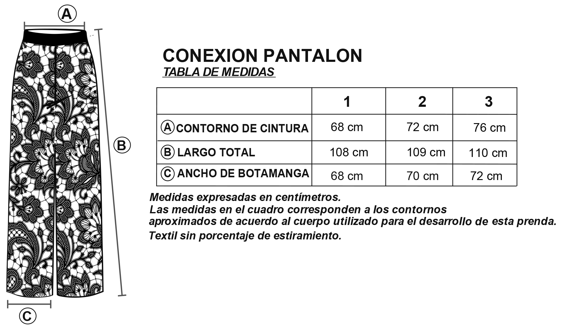 Pantalón de encaje y algodón, con ribb en cintura. Es translucido por partes.