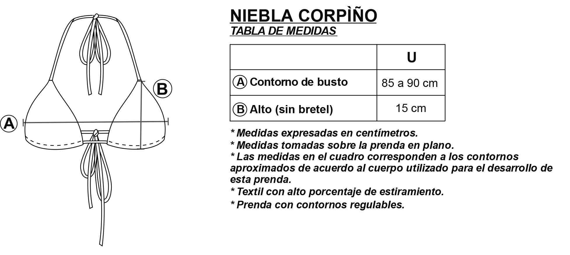 Corpiño confeccionado en microtul sublimado con estampa exclusiva de Shibinda. Presenta tiras en cuello y espalda que permiten un ajuste personalizado. La taza se encuentra forrada para mayor confort y soporte.