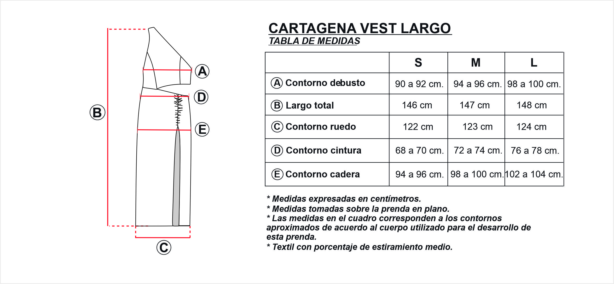 Vestido largo de lentejuelas. Su top es irregular de un hombro y su falda tiene un frunce en delantero con un tajo profundo. El top se encuentra íntegramente forrado y la falda tiene forrería corta.