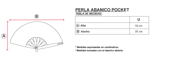 Abanico tamaño pocket confeccionado en tela con estructura de madera. Presenta estampa exclusiva de Shibinda en el frente e incluye funda del mismo material y diseño para su guardado. Medidas: abierto 18 cm x 35 cm / cerrado 18 cm x 3,5 cm. Un accesorio práctico y distintivo para acompañarte en cualquier ocasión.