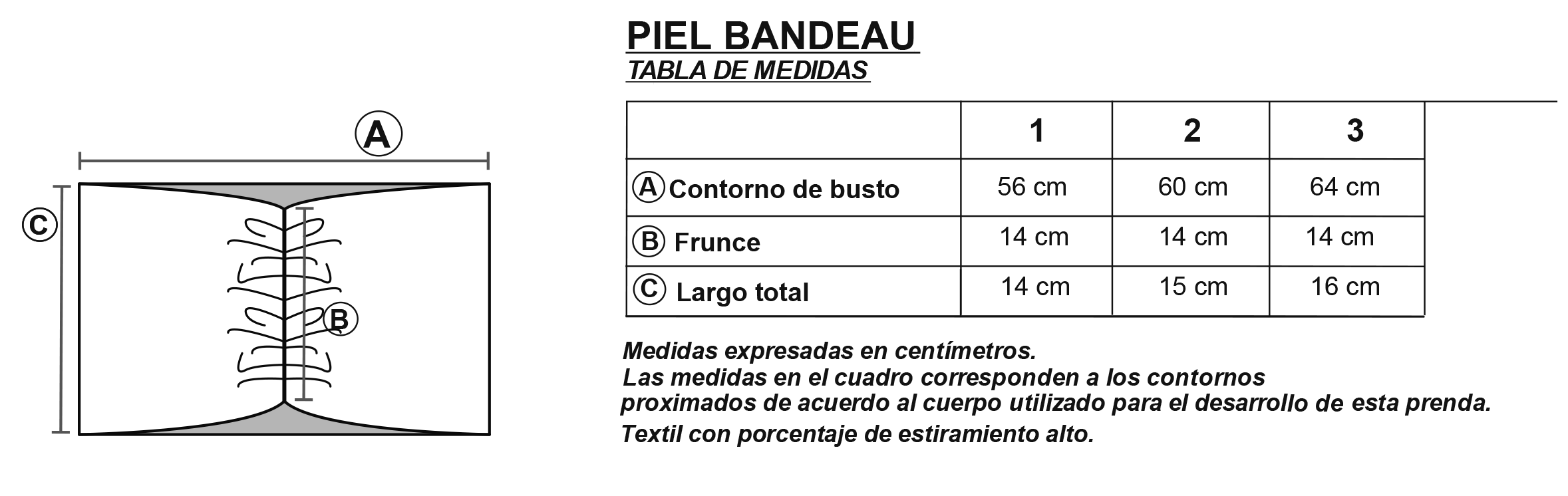 Top bandeau reversible, con frunce central en un lado y diseño recto en el otro. Íntegramente forrado. Ideal para utilizar como prenda principal o debajo de prendas transparentes. Confeccionado en tejido con elasticidad media.